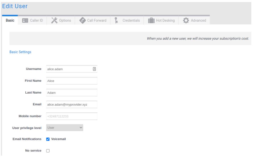3) Fill out at least the basic fields for the username, first name, last name and email address of the user.